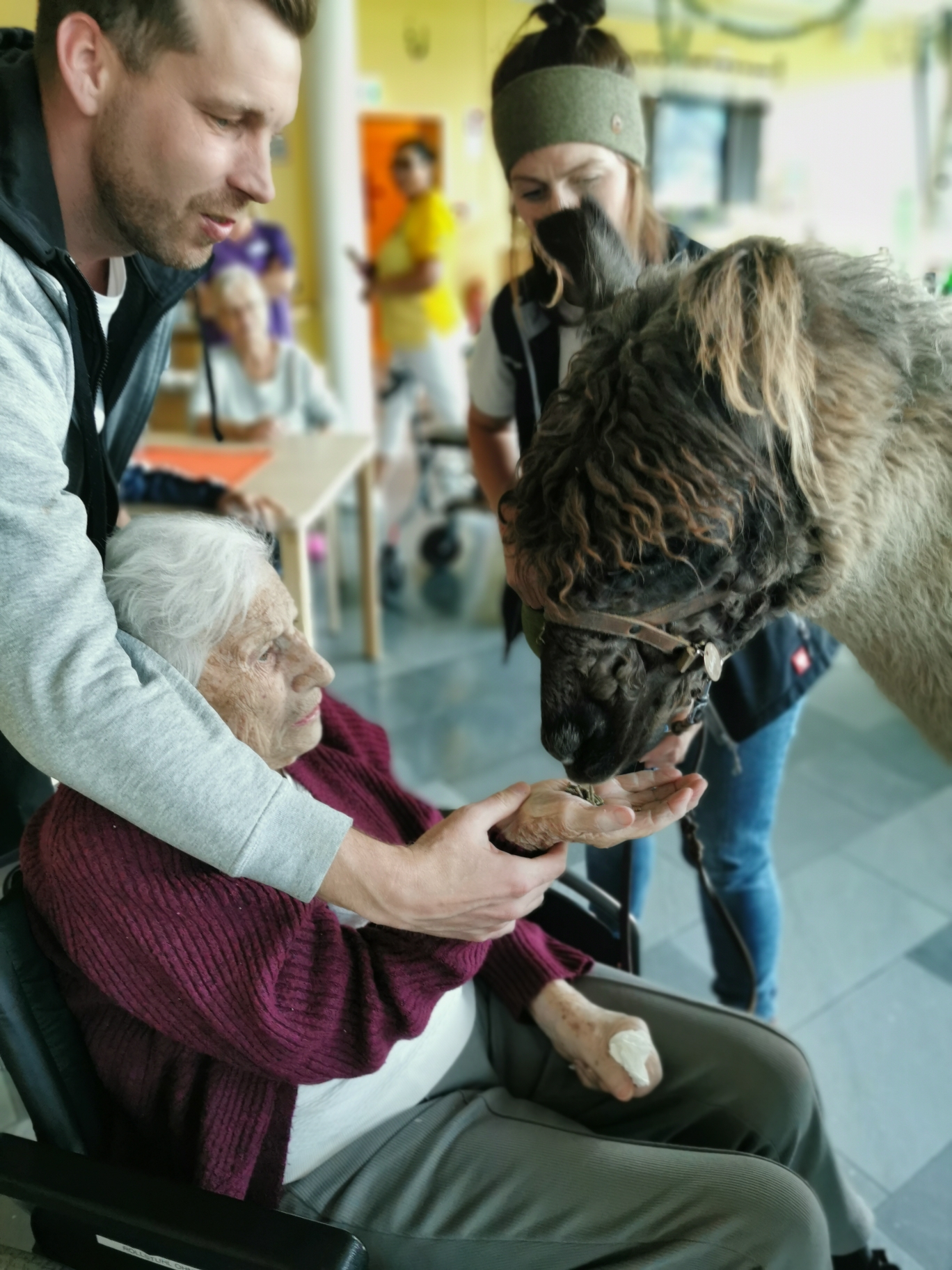 Mit leisen Schritten, neugierigen Blicken und einem sanften Wesen brachten Lama Silberpfeil und Alpaka Diego Freude, Ruhe und ein Lächeln in die Gesichter der Bewohnerinnen und Bewohner des SeneCura Sozialzentrums Gratkorn. Die beiden außergewöhnlichen Tiere sorgten für unvergessliche Momente, förderten soziale Interaktion und schafften eine Atmosphäre voller Wärme und Geborgenheit.