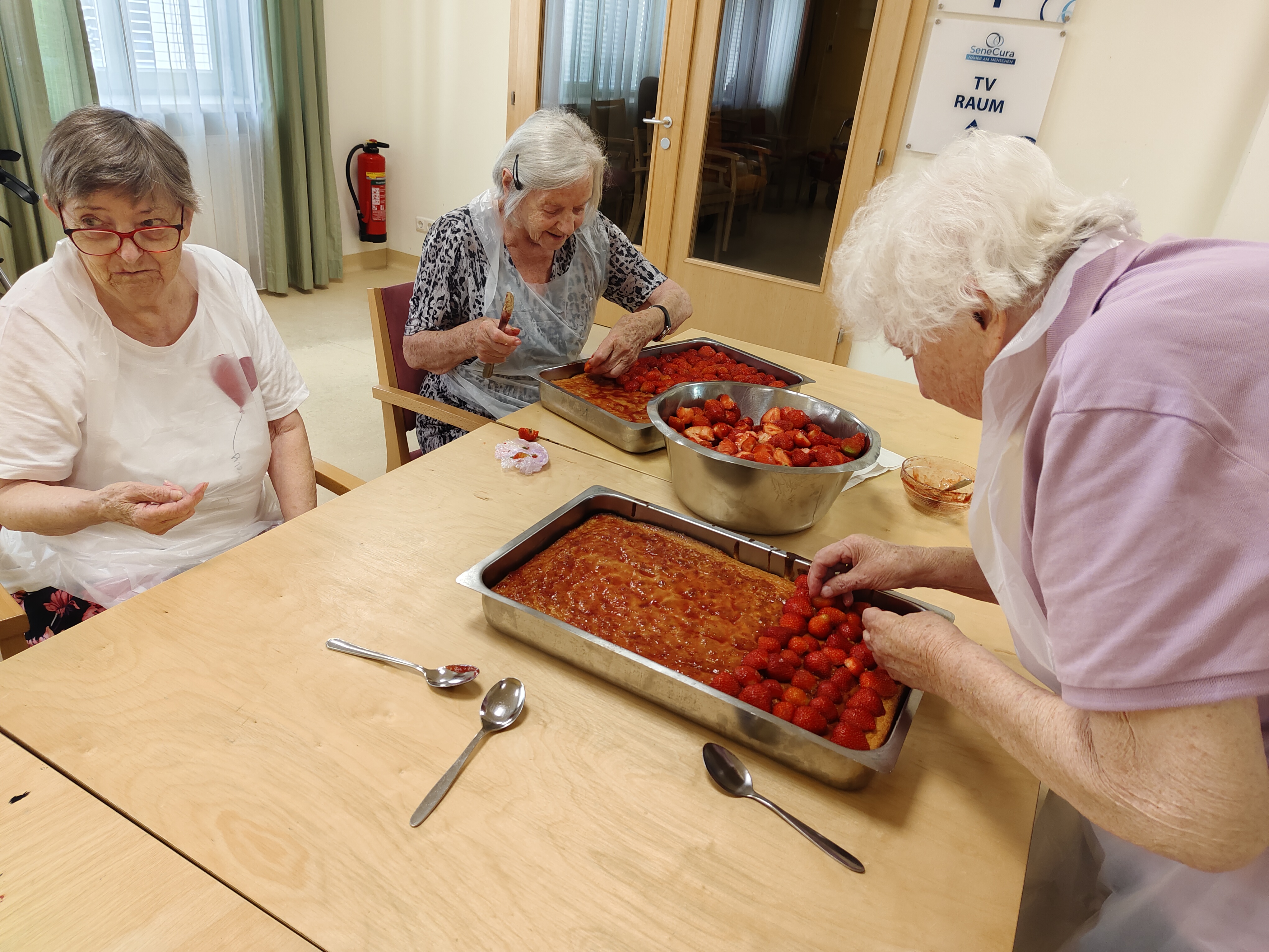 Auch im Juni ging es im SeneCura Sozialzentrum Gratkorn wieder lustig zu. Zum einen fand die traditionelle Vatertagsfeier mit dem Trompetenexpress statt. Musikalische Glanzstücke ließ die tanzerprobten Väter sicherlich nicht kalt. Aber auch die kulinarischen Genüsse kamen nicht zu kurz. Die Senior:innen backten fleißig Erdbeerkuchen. Dabei tauschte man das ein oder andere Rezept mit Gelinggarantie aus. Zu guter Letzt wurde auch wieder fleißig gegartelt. Schöne Sommerblumen zierten seither den Außenbereich des SeneCura Gratkorn – ganz zur Freude der Bewohner:innen.